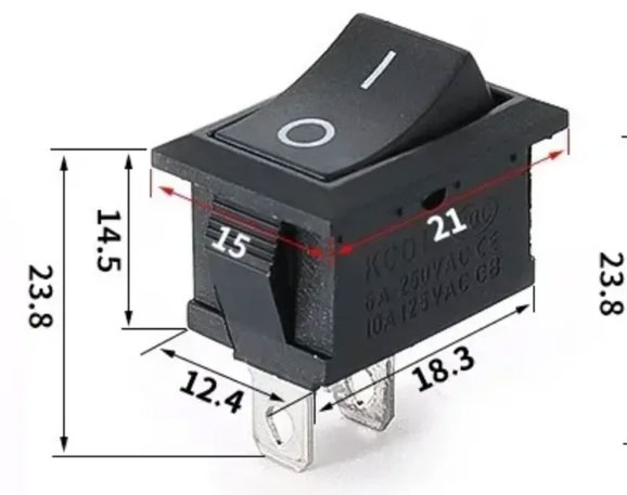 Interruptor basculante 6A 250V On/Off 2 pin mini Rocker Switch SPST